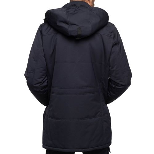 Cette parka possède un double col ainsi qu'une capuche amovible. Nombreuses poches intérieures et extérieures.