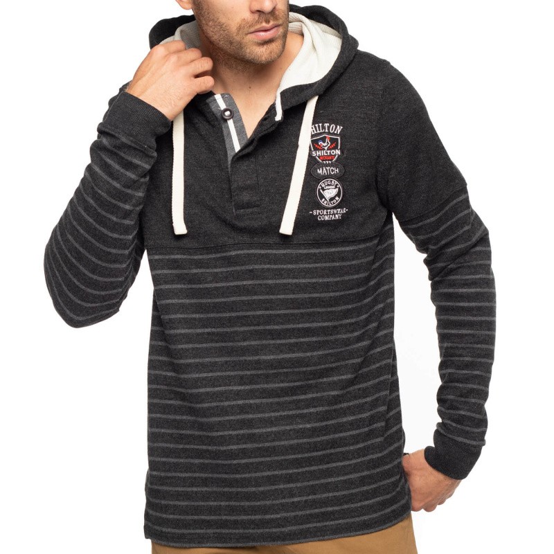 Polo coton, coupe droite, rayé avec capuche.