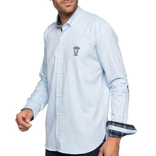Chemise 100% coton, coupe droite, poignets travaillés et coudières fantaisie.